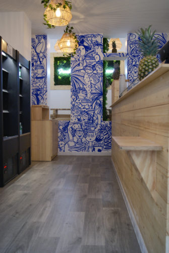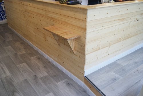 - Meubles sur-mesure (comptoir de commandes, tables, chaises, meuble poubelle… jusqu’aux plateaux !!) viennent compléter cette grande aventure.